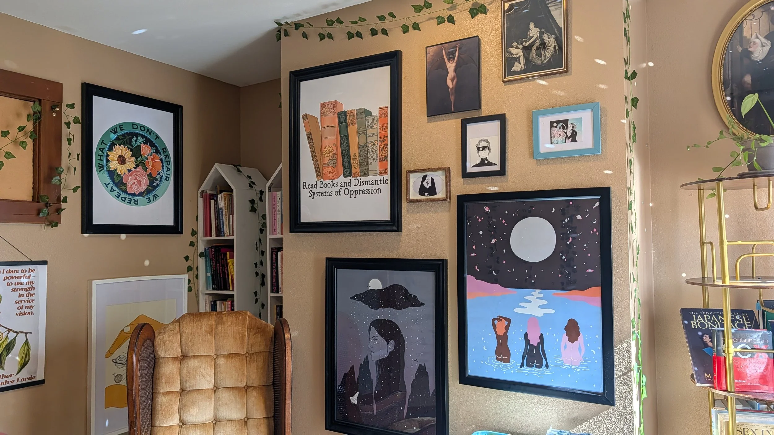 60 or 75 minute group therapy structure facilitated by a master’s level clinician in a safe space to help process interpersonal & intrapersonal dynamics in differing subjects such as trauma, addiction, parenting, and healthy sexuality.